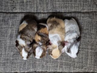 Mutter: C8 "vom Mondscheinhof" (Glatthaar Schwarz-Creme-Solidagouti-Creme-Weiß)